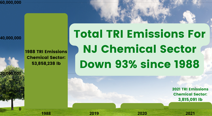 TOTAL TRI EMISSIONS FOR NJ CHEMICAL SECTOR DOWN 93% SINCE 1988